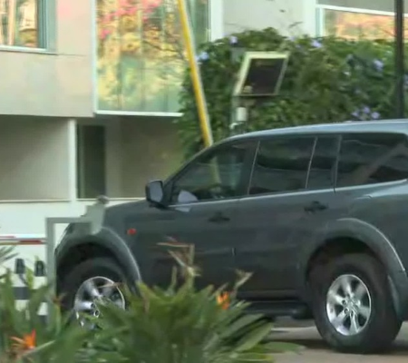 Viatura da PF em condomínio de Mateus Von Rondon, assessor especial do ministro do Turismo, em Brasília — Foto: Reprodução/TV Globo