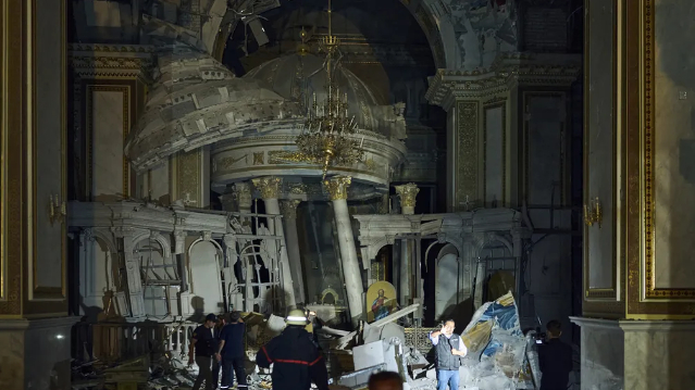O Ministério da Defesa da Rússia relatou ataques a alvos na área de Odessa, porém negou ter atingido a catedral, sugerindo que o prédio provavelmente foi alvejado por um míssil antiaéreo ucraniano.