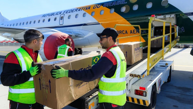 A aeronave também leva 40 purificadores de água portáteis, além de dois kits de medicamentos e insumos enviados pelo governo brasileiro, para atender à situação de emergência na Faixa de Gaza, que vem sendo bombardeada por Israel desde 7 de outubro.
