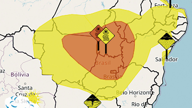 Segundo o INMET, estados como Pará, Amazonas, Maranhão, Piauí, Ceará, Bahia, Paraíba, Rio Grande do Norte, Mato Grosso do Sul e Minas Gerais receberam alerta amarelo (perigo potencial), pelo risco de umidade entre 30% e 20%.Embora seja baixo o risco de incêndios florestais e à saúde, o INMET reforça a necessidade da ingestão de líquido, evitar desgaste físico, bem como exposição ao sol nas horas mais secas.
