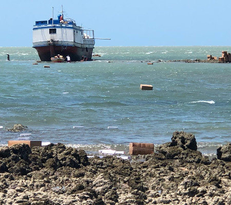 Barco encalhou no litoral do Piauí (Divulgação)Polícia Federal se encontra no local da ocorrência (Divulgação)