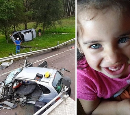 O acidente grave aconteceu na última semana na BR 116, em Mafra, Santa Catarina. As informações preliminares, segundo o Corpo de Bombeiros, são de que um caminhão teria fechado a frente de um veículo ao sair da terceira pista, fazendo com que o motorista perdesse o controle e rodopiasse na rodovia. O carro onde estava Danieli Torquato, 23 anos, de Itaiópolis, com três pessoas da família, seguia logo atrás e acabou colidinho. "Eu estava voltando de Balneário Camboriú com a minha filha, Letícia, 2 anos, e pedi para meus padrinhos buscarem a gente na rodoviária de Mafra e eles foram. Então, pouco depois das 14h30, pegamos a rodovia. De repente, só ouvi minha tia falar 'Meu Deus' e, quando olhei, a caminhonete já estava em cima da gente", lembrou Danieli, em entrevista à CRESCER.