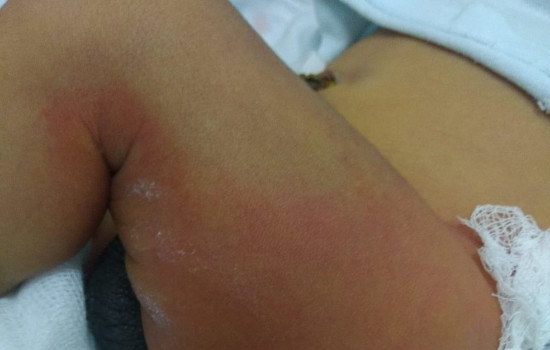 Criança apresentou bolhas na perna algumas horas após banho em maternidade - arquivo pessoal