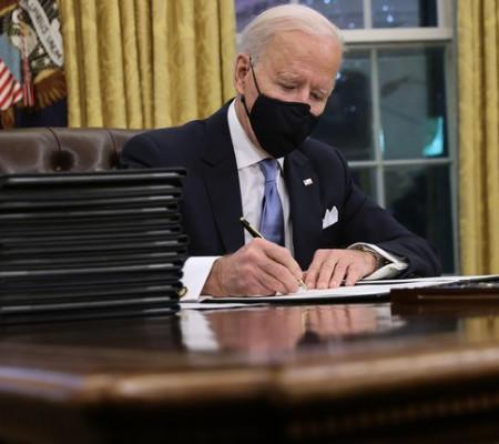 O presidente emitiu uma série de ordens executivas na quinta-feira para lidar com a pandemia. Derrotar a covid-19 é a condição necessária para a recuperação econômica, insiste o democrata há meses.