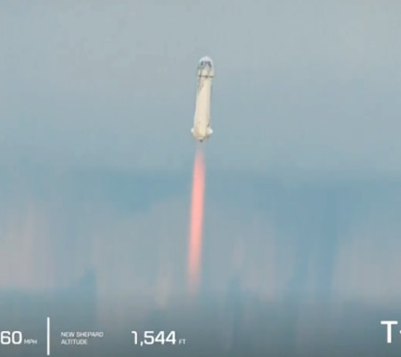 A cápsula New Shepard partiu de uma base remota no deserto do oeste do Texas, chamada Launch Site One, cerca de 40 quilômetros ao norte de Van Horn, a cidade mais próxima.
