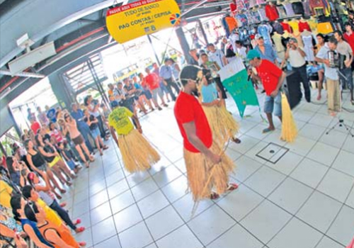 A auxiliar de serviços gerais, Socorro dos Santos, deu um tempo na correria e parou para apreciar os brincantes. "É muito bonito, tem muita animação. É importante ter este tipo de apresentação, porque isso é uma cultura muito boa", declara.