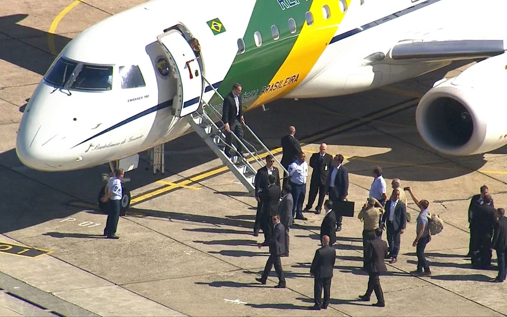 O avião presidencial decolou de Brasília por volta de 8h30 e pousou no Aeroporto de Congonhas, Zona Sul de São Paulo, às 10h. Bolsonaro viajou acompanhado de uma delegação, que incluía assessores e ajudantes de ordens, e da esposa, a primeira-dama Michelle Bolsonaro. Ela deverá ficar com o presidente nos dias em que ele permanecer internado em São Paulo.