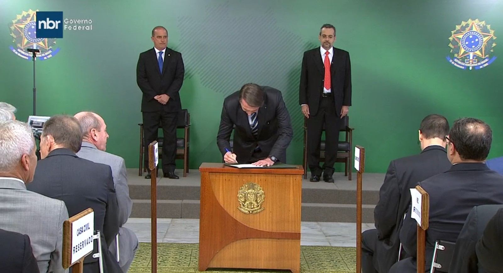 A cerimônia de posse foi realizada no Palácio do Planalto no dia seguinte ao anúncio da demissão de Vélez Rodríguez e da escolha de Weintraub para sucedê-lo à frente do MEC.