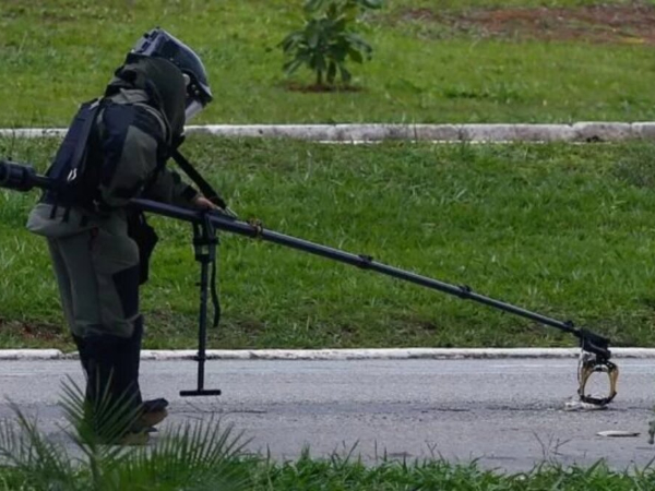 O artefato encontrado pela polícia tem um acionador envolvido por fios, que, quando ligado, pode causar explosão.