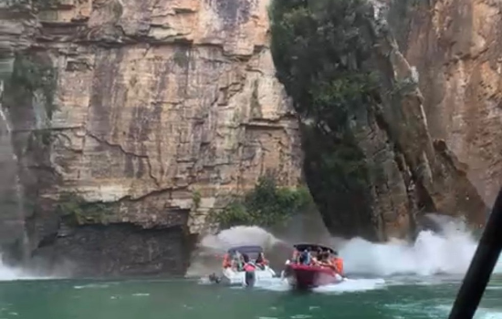 Pelo menos três embarcações com turistas foram atingidas após um deslizamento de pedras no Lago de Furnas, em Capitólio, no Centro-Oeste de Minas Gerais (MG), neste sábado (08). Sete pessoas morreram. Imagens que circulam nas redes sociais flagram o exato momento da queda das rochas.