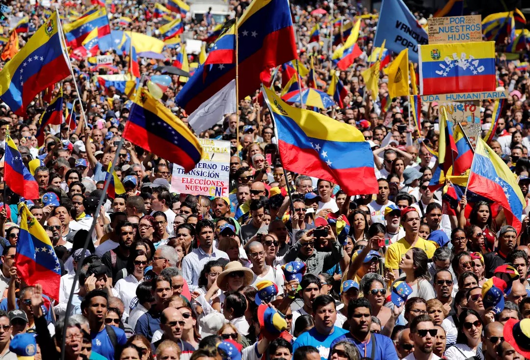 Manifestantes contra Nicolás Maduro carregam bandeiras da Venezuela durante manifestação em Caracas | (Foto: Manaure Quintero/Reuters)