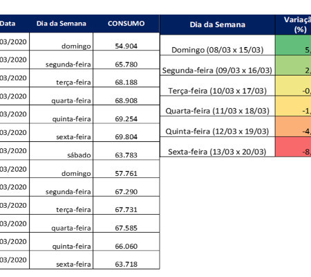 De acordo com as informações da organização, na comparação dos dias úteis (16 a 20 de março) em relação aos mesmos da semana anterior, houve uma crescente redução no consumo de energia elétrica.