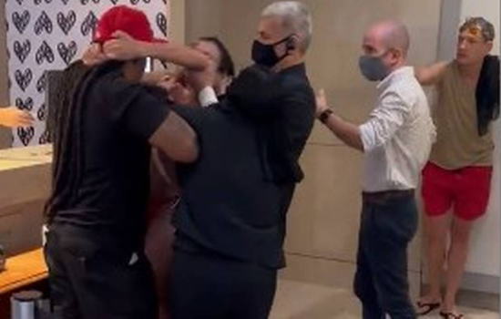 A mulher então tenta se digirir novamente ao homem que aparentava aguardar atendimento, mas é contida por funcionários. Nesse momento, um dos seguranças pede que o rapaz se retire do ambiente. Uma testemunha que filma o episódio diz na gravação, em inglês, que a atitude é "inaceitável" e cobra que a equipe de segurança segure a brasileira, que também se irrita com a filmagem.