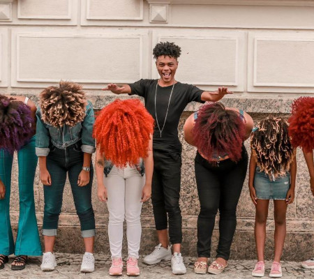 “Comecei a minha história dos cachos indo de casa em casa. Morros, comunidades e bairros nobres. Ia para onde me chamavam. Estou atendendo no quintal da minha avó até hoje mas sonho em oferecer um espaço mais confortável para as minhas clientes.”