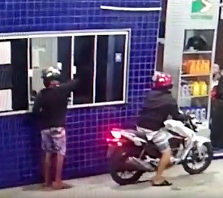 As câmeras de segurança de um Posto de Combustível - Posto Pinheirão - na BR 343, na saída de Parnaíba em direção a Buriti dos Lopes flagraram a ação da dupla que a exemplo do assalto no Tabuleiro durou menos de 30 segundos.