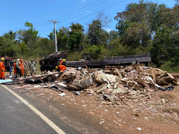 Já os demais ocupantes estavam na parte de trás do caminhão e após o tombamento dois homens ficaram embaixo da carga e morreram na hora. Os outros dois foram resgatados com ferimentos graves.