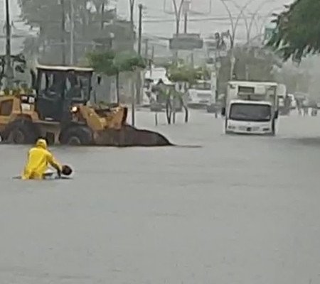 Um caminhão frigorífico que estava fazendo o transporte de vacinas da Pfizer, ficou 'preso' em um alagamento nesta sexta-feira (14), na cidade de Recife.