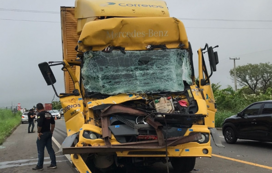 O impacto foi tão violento que deixou a frente do veículo totalmente destruída. Uma ambulância do Serviço de Atendimento Móvel de Urgência (SAMU) esteve no local realizando atendimento médico para o condutor do caminhão, mas não se sabe o seu estado de saúde.