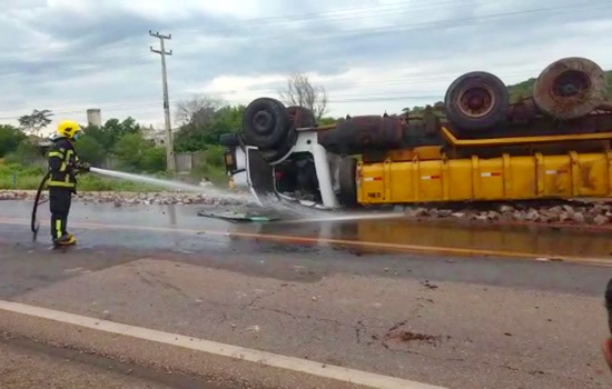 Caminhão tomba e deixa três pessoas feridas; uma em estado grave no Piauí
