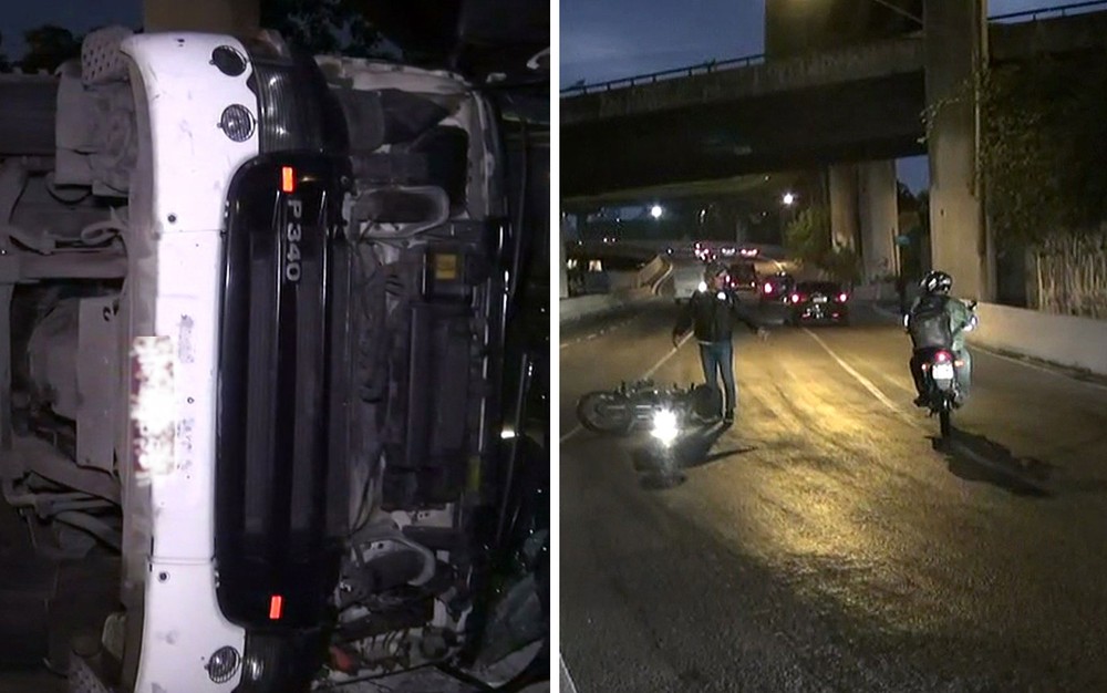 Devido ao óleo espalhado pela via, ao menos três motociclistas escorregaram, sendo que dois caíram quase simultaneamente. O motorista do caminhão contou à reportagem que foi fechado por um carro quando estava fazendo a curva, perdeu o controle e tombou. Ele reclamou de dor no braço, mas passava bem.