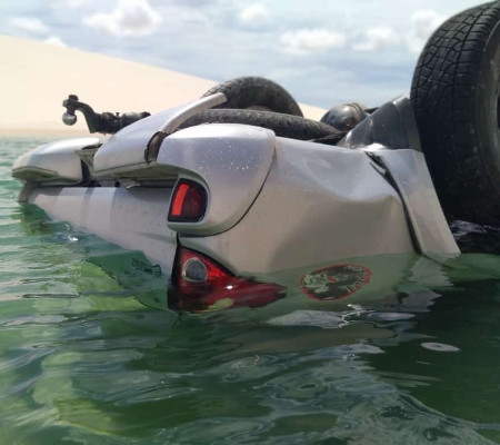 Seis pessoas, dentre elas uma criança, ficaram feridas em um acidente na quarta-feira (12) envolvendo uma caminhonete na região dos Lençóis Maranhenses, no município de Barreirinhas. O veículo perdeu o controle e capotou na areia, em seguida, caiu dentro de uma lagoa.