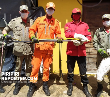 Bombeiros Civis e Militares estivera no local, realizando a captura do animal e a levando a um local adequado.
