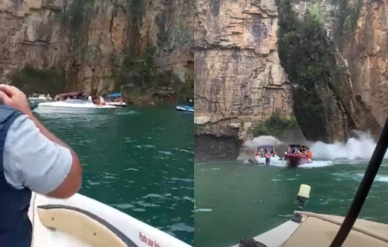 No registro é possível ver outros turistas chamando atenção para as pedras se desprendendo no cânion. Alguns ainda pedem para as lanchas de trás afastarem e quando menos se espera, a rocha cai e atinge ao menos 3 embarcações.