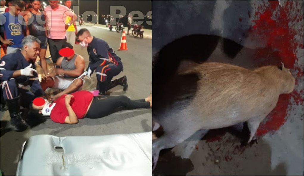 De acordo com testemunhas, uma capivara atravessou a avenida e entrou na frente da motocicleta de um casal. Na garupa, estava uma mulher grávida, que precisou receber atendimento médico.