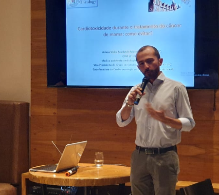 O encontrou aconteceu nesta quarta-feira, 27 de novembro, data alusiva ao Dia Nacional de Combate ao Câncer, com a presença da cardiologista Ariane Vieira Scarlatelli Macedo, médica do Centro Paulista de Oncologia. Drª. Ariane Macedo é mestre em Saúde do Adulto pela UFMG, atuou como coordenadora médica da Unidade Crítica Cardiológica do Hospital Sírio – Libanês, atua como coordenadora científica da Cardiologia da Rede Mater Dei de Saúde. É vice -presidente do Grupo de Estudos de Cardio- Oncologia da Sociedade Brasileira de Cardiologia e consultora em cardio -oncologia do Grupo Oncoclínicas do Brasil.