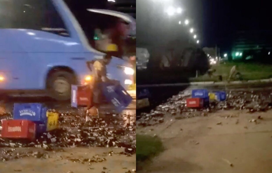 Na madrugada desta sexta-feira, 13 de maio, por volta de 00h15, cargas de cerveja caíram de um caminhão na rotatória da Avenida Miguel Rosa, na BR-316, zona Sul de Teresina. A mercadoria ficou espalhada na pista e populares saquearam as garrafas.