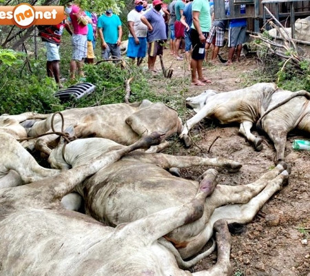 Alguns animais morreram com o capotamento da carreta de placas, MOV-2348, BAYEUX-PB, e outros adentraram o mato e também ficaram feridos. O trânsito ficou lento com o acidente comprometendo as duas vias da estrada.