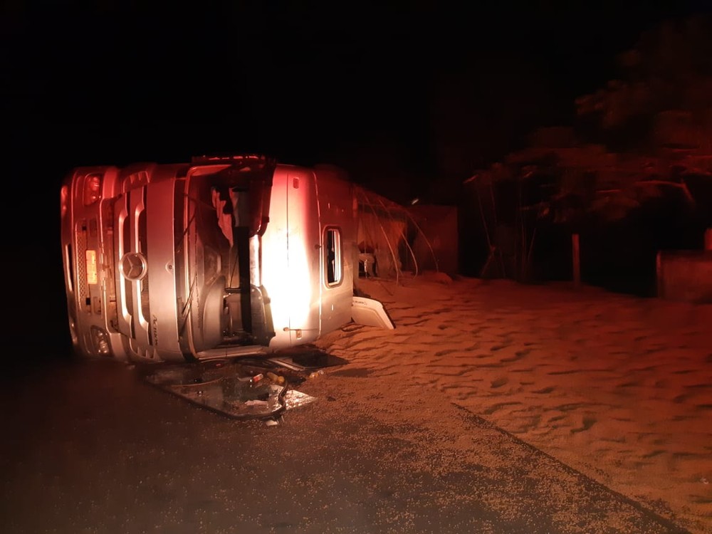 Acidente aconteceu na noite de sábado (1º) entre os municípios de Vitória do Mearim e Santa Inês; Motorista que conduzia o veículo pesado teve ferimentos leves.