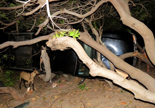 Segundo informação de populares, o carro, que vinha veloz no sentido sul/norte, desviou de um ciclista e ao retornar para a faixa direita desceu a ribanceira. O carro capotou e se chocou em um cajueiro após quase 200 metros do local onde fez o desvio. O condutor do carro, que segundo populares estava muito bêbado, fugiu do local.