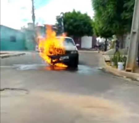 Um carro pegou fogo, na manhã dessa segunda-feira (31), nas proximidades da Igreja Evangélica Assembleia de Deus, no bairro Aerolândia, no município de Picos, região Sul do Piauí.