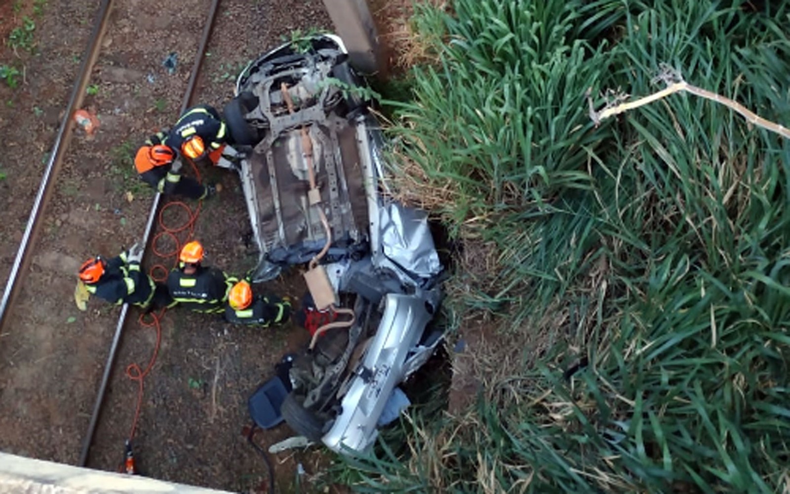 Um casal de namorados morreu após o carro em que estavam despencar do viaduto sobre a linha férrea no km 127 da Rodovia Luiz de Queiroz (SP-304), em Americana (SP), segundo o Corpo de Bombeiros.