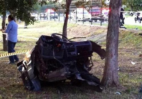 O condutor de um Escort perdeu o controle do veículo e bateu em uma árvore. O carro dividiu-se ao meio com o impacto. Parte ficou sobre a calçada e o restante do veículo foi parar no gramado em frente ao CentroSul.