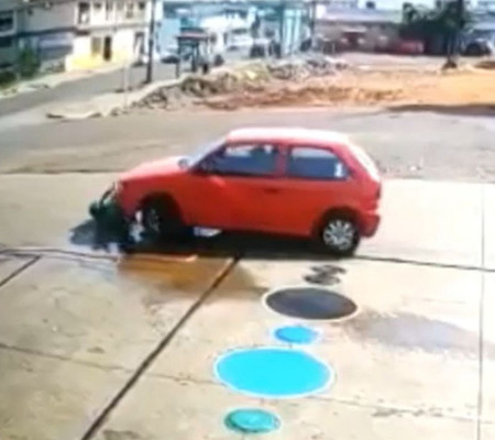 Uma câmera de segurança registrou o momento em que um carro passou por cima de um frentista, de 60 anos, que estava agachado em um posto de combustíveis, em Cascavel, no oeste do Paraná, na segunda-feira (5).  Nas imagens é possível ver que o homem verificava o reservatório de água do posto, quando o motorista, que calibrava os pneus, acelerou o carro para deixar o local.