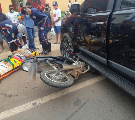 Um acidente tipo colisão transversal envolvendo carro e motocicleta deixou mulher gravemente ferida nessa quinta-feira (11/06), na BR-343, em Altos. Um homem de 45 anos, conduzia um veículo, modelo S-10, saiu ileso. A motocicleta POP 110I era conduzida por uma mulher de 34 anos que sofreu lesões graves.