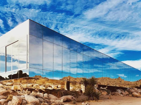 A famosa casa espelhada no deserto de Joshua Tree, na Califórnia (EUA), está a venda por R$ 92 milhões (US$ 18 milhões). Concluída em 2019, a construção reflete a paisagem ao redor e parece invisível em meio às montanhas, pedras, cactos e vegetação rasteira da região. O local ficou conhecido após aparecer na série Aluga-se um paraíso, da Netflix, e passou a atrair celebridades, como os cantores Diplo e Demi Lovato, para curtas e longas estadias.