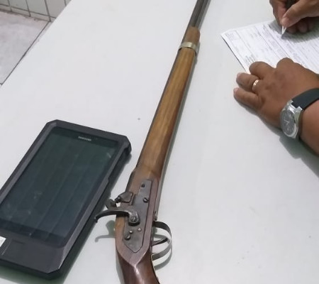 A vítima, um senhor, relatou à Polícia que um casal portando uma espingarda o abordou e efetuou o roubo do seu celular e demais pertences.