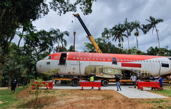 Como precisou ser parcialmente desmontado para chegar ao novo lar, o Airbus A318 está agora recebendo de volta estruturas e peças como asas e trem de pouso. O processo deve demorar entre 10 e 15 dias, segundo os novos proprietários Fábio e Cláudia.