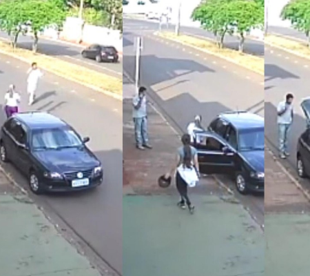 “Eu vi que ele estava agachado no pneu do carro. Talvez murchando, sei lá, fazendo alguma coisa. Quando ele me viu até se assustou e levantou. Ele foi até o canteiro e ficou mexendo nas árvores que estão ali, meio que disfarçando a situação. Eu estava saindo para trabalhar, então fui embora”, conta o homem, que preferiu não se identificar.