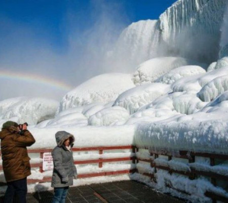 As famosas cataratas do Niágara congelaram na segunda-feira (22/2), em meio a uma forte frente fria polar que continua a atingir várias regiões dos Estados Unidos.