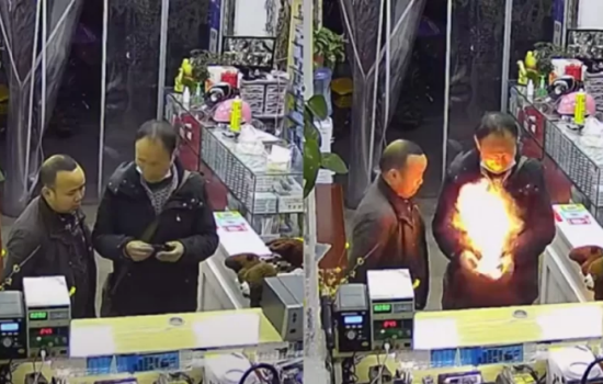 Um cliente foi surpreendido em uma loja de assistência técnica na China ao ver seu celular explodindo em suas mãos. A cena foi gravada pelas câmeras do estabalecimento. O incidente ocorreu na cidade de Deyang, localizada na província de Sichuan, na área central do país asiático.
