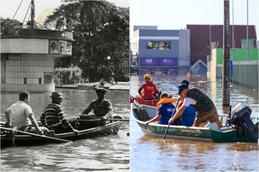 Desde o início da tragédia que assola o Rio Grande do Sul, especialistas têm estabelecido comparações entre as atuais inundações e as cheias de 1941 no Guaíba, em Porto Alegre. Foi constatado que o desastre atual foi mais devastador do que o anterior - o nível do lago ultrapassou o antigo recorde de 4,76 metros e atingiu nesta semana a marca de 5,33 metros. Para contextualizar, é importante notar que as enchentes costumam ocorrer a partir de 3 metros de altura.