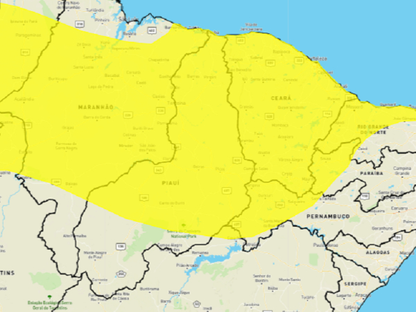 Quase todo o Piauí deve registrar chuvas intensas, com volumes entre 20 e 30 mm/h ou até 50 mm/dia e ventos fortes que podem chegar a 60 km/h. As informações constam no alerta emitido nesta segunda-feira (13), pelo Instituto Nacional de Meteorologia (INMET).