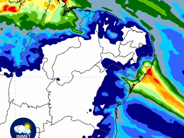 "Um canal de umidade em atuação sobre o leste da Região Nordeste, ganhará força à medida que a Alta Subtropical do Atlântico Sul (ASAS) se configura e desloca seu centro para o oceano Atlântico e um Cavado invertido (área alongada de baixa pressão) estende seu eixo sobre a costa. Essa configuração, associada também a presença de umidade em médios níveis da atmosfera e a intensificação dos ventos em altitude (Jato Subtropical), irá contribuir para a ocorrência de chuvas em toda a faixa leste, da Bahia até a Paraíba (com menor intensidade)", informou o INMET.