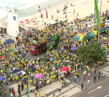 No Rio, o ato se concentrou na Avenida Atlântica, na orla de Copacabana. Manifestantes usavam, principalmente, roupas com cores verde e amarelo e carregavam bandeiras do Brasil. Vários carros de som se concentraram em dois pontos: na altura do Posto 5 e em frente à Rua Xavier da Silveira.