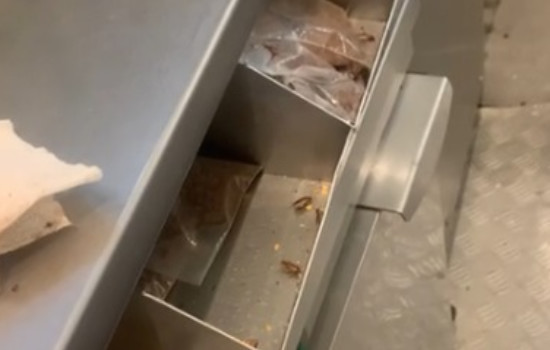 “Olha o tanto de barata que tem aqui”, disse a pessoa que grava o vídeo. Na sequência, mais clientes surgem indignados com a situação. “Meus Deus! tem que denunciar, gente! Olha lá as baratas andando no chão”, disse outra.