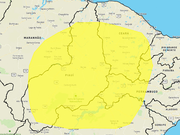 O Instituto Nacional de Meteorologia (Inmet) emitiu um alerta amarelo de perigo em potencial para 62 cidades do Piauí. O clima seco, com baixa umidade relativa do ar em até 20%, considerado desértico, é a causa da notificação climática, que vale de 12h às 18h deste domingo (30).